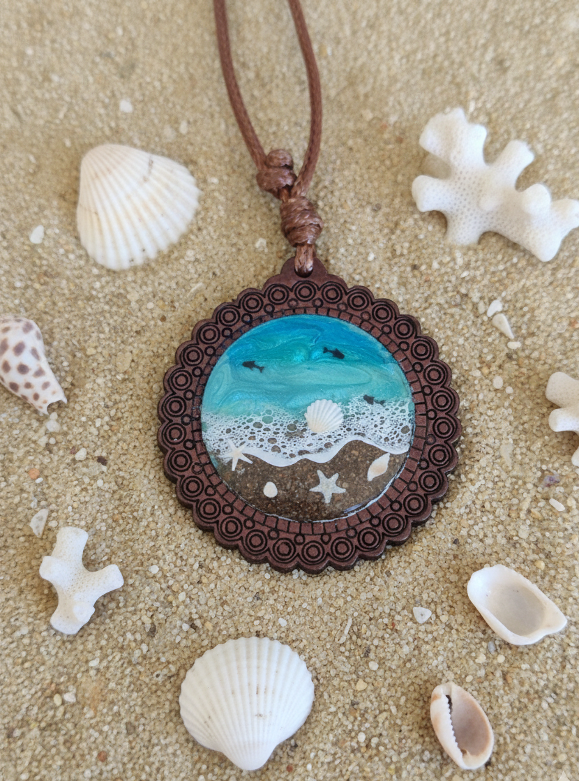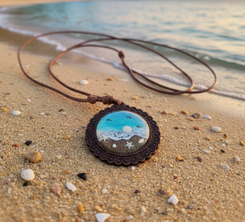 Este collar de madera y resina personalizado es más que un simple accesorio; es un recuerdo portátil de tus momentos favoritos en la playa. Es el regalo perfecto para amantes del mar, surfistas o cualquiera que sienta nostalgia por el azul profundo. Si buscas joyería temática marina y valoras el trabajo manual y la originalidad, este diseño cumplirá todas tus expectativas. La combinación de materiales naturales y la resina de alta calidad garantizan una joya duradera, ligera y con un brillo espectacular.