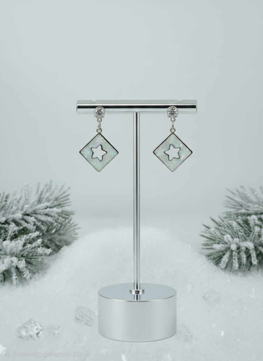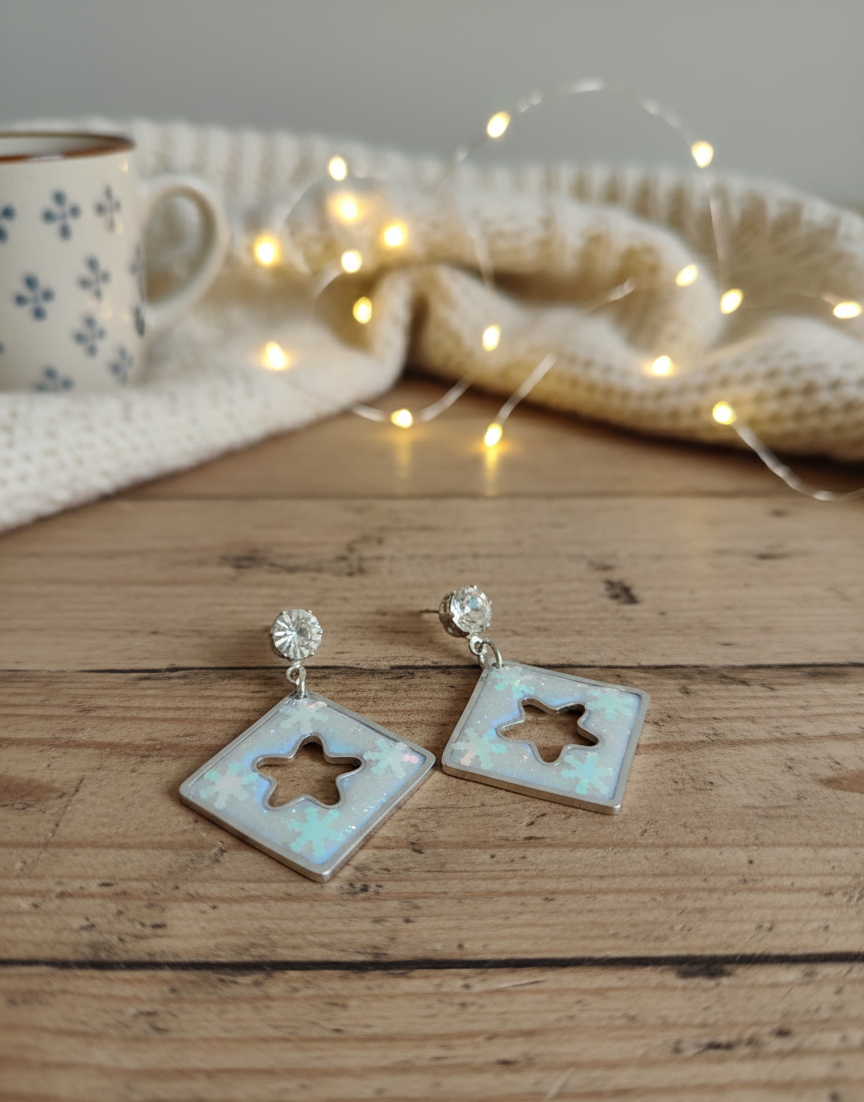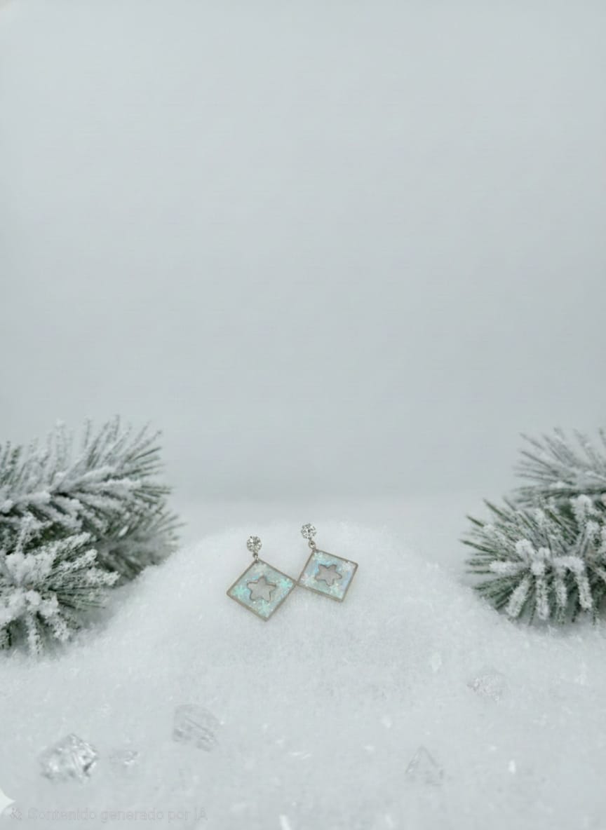 - Producto: Pendientes de Resina con Copos de Nieve.