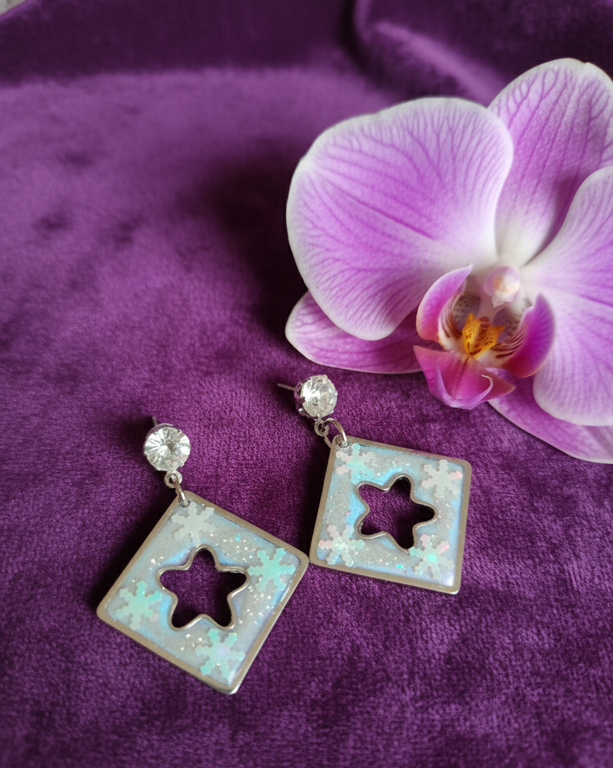 Pendientes de Resina con Copos de Nieve