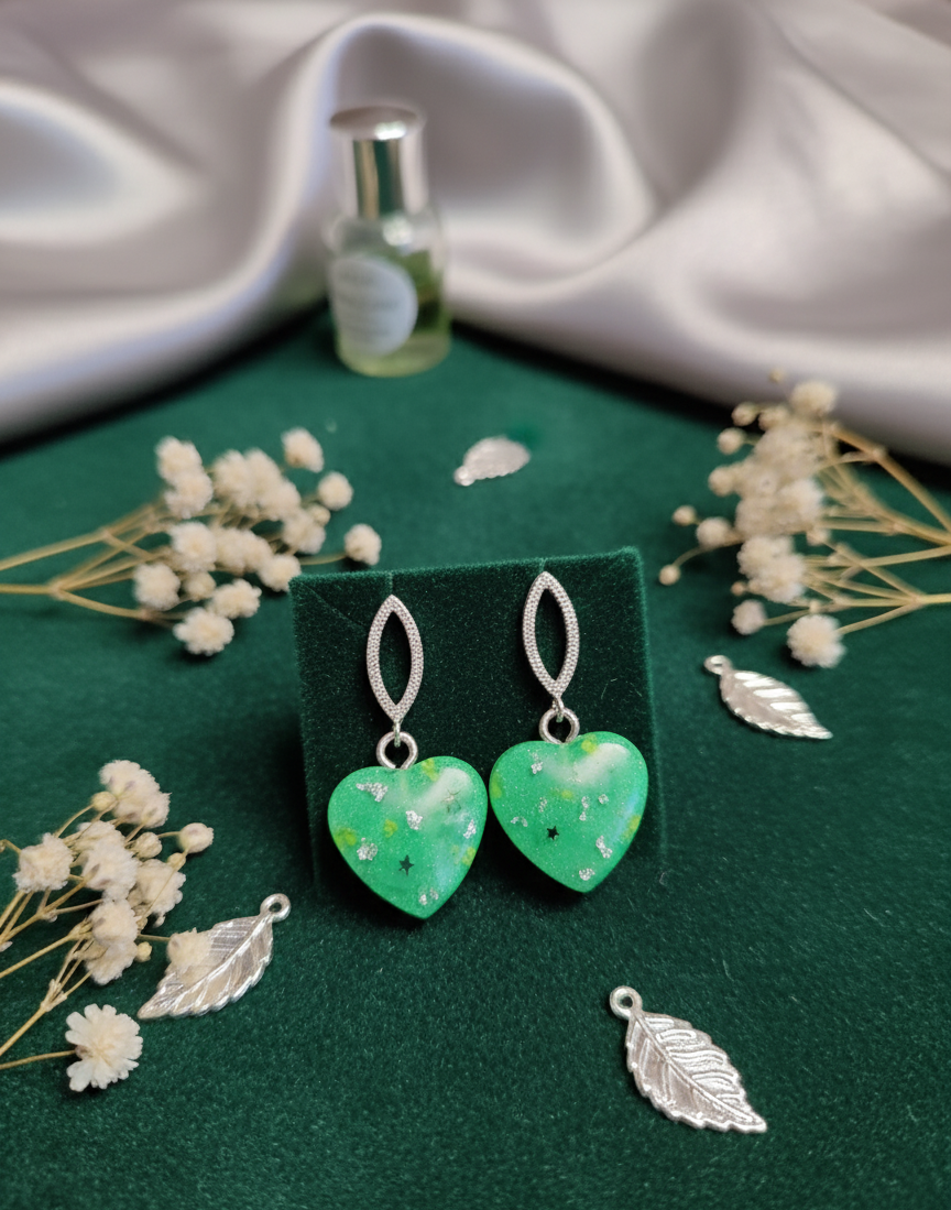 Nuestros pendientes artesanales de corazón son ligeros, brillantes y capturan la luz de una manera mágica. Son perfectos para añadir un toque dulce y sentimental a cualquier look, siendo un detalle inolvidable para San Valentín o un aniversario. Olvídate de la joyería aburrida; esta joyería floral con resina combina la tendencia actual con el simbolismo eterno del corazón. Elige entre corazones pequeños y discretos o diseños más grandes y llamativos. ¡Cada pendiente de corazón es tan único como la persona que lo lleva!